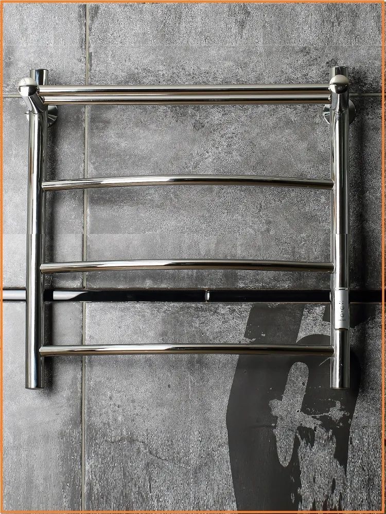 Полотенцесушитель электрический Тругор Пэксп5 с полской, 4 перекладины, мощность 60 Вт. Подключение левое или правое. Возможность скрытого подключения.