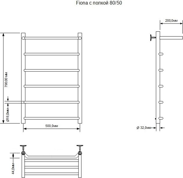 Полотенцесушитель водяной Aquanet Fiona с полкой, 6 перекладин, размер 500х790 мм, цвет хром.
