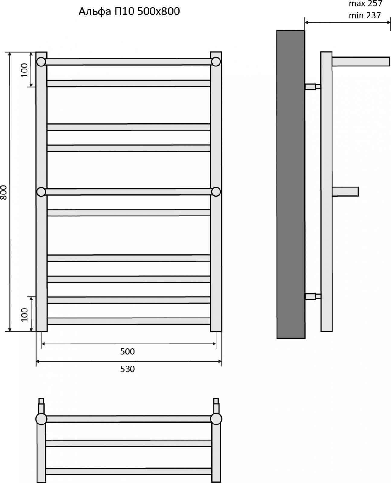 Полотенцесушитель водяной Aquatek Альфа с полкой П10 500х800 мм AQ RRP1080CH