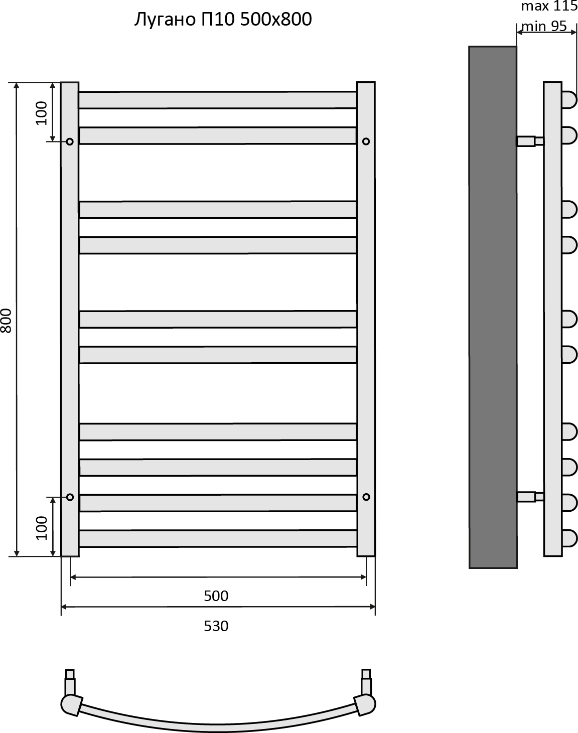 Полотенцесушитель водяной Aquatek Лугано П10 500х800 мм AQ DOC1080BL, чёрный муар