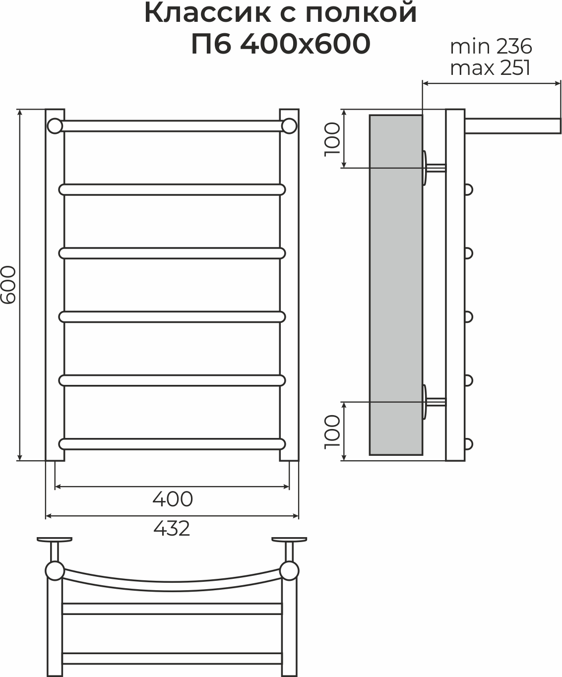 Полотенцесушитель водяной Terminus Классик с полкой П6 400x600 мм 4670078556707