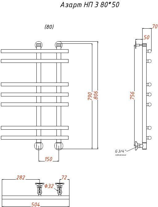 Полотенцесушитель водяной Тругор Азарт НК3 П7 150х800 мм 00-00021586
