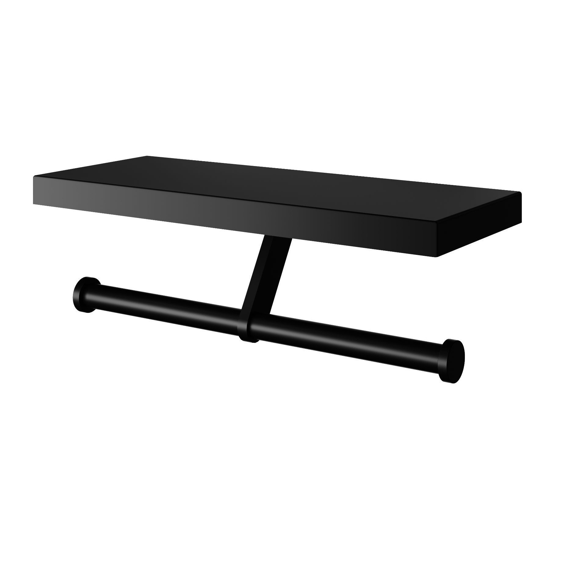 Держатель для туалетной бумаги Wonzon & Woghand WW-V3802-MB с полкой для телефона, материал латунь, цвет чёрный матовый.
