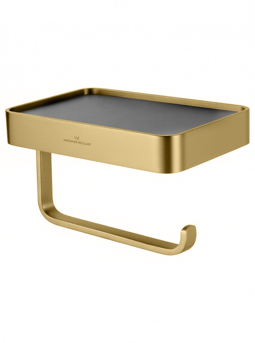 Держатель для туалетной бумаги Wonzon & Woghand Graffity WW-9366-BG с полкой для телефона, материал латунь, цвет золото брашированное.