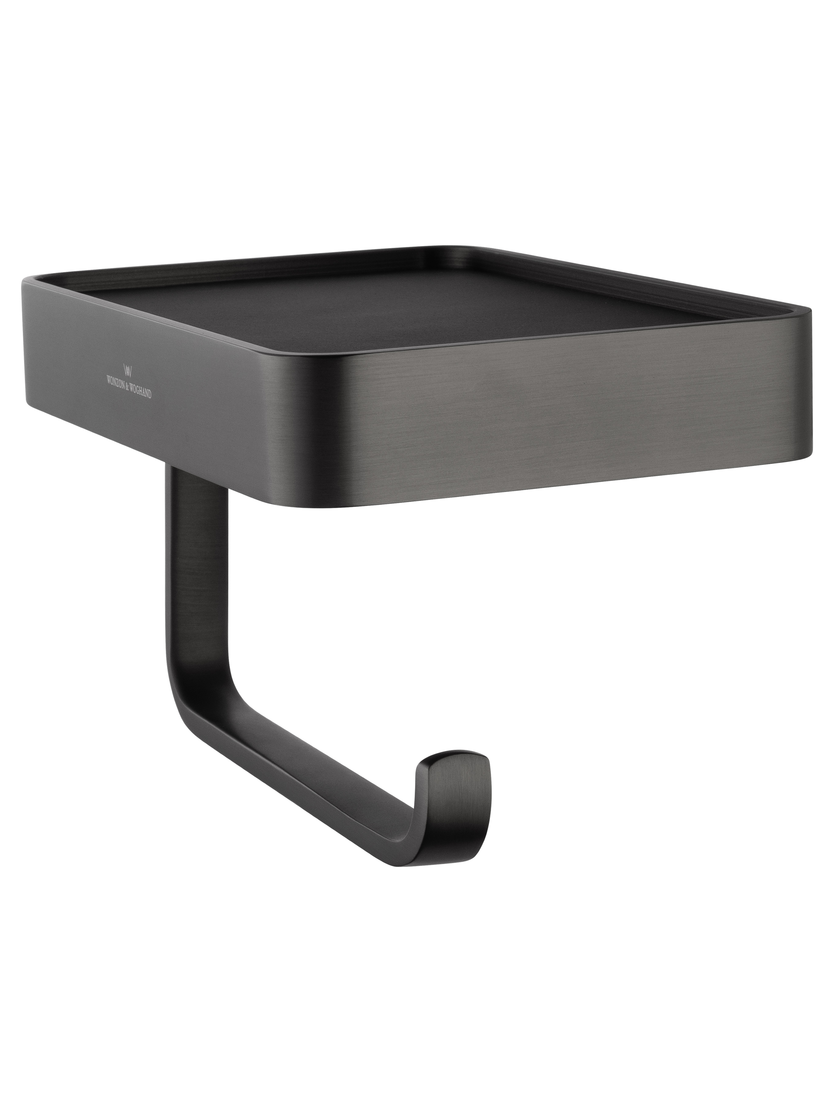 Держатель для туалетной бумаги Wonzon & Woghand Graffity WW-9336 с полкой для телефона, материал латунь, цвет тёмный графит брашированный.