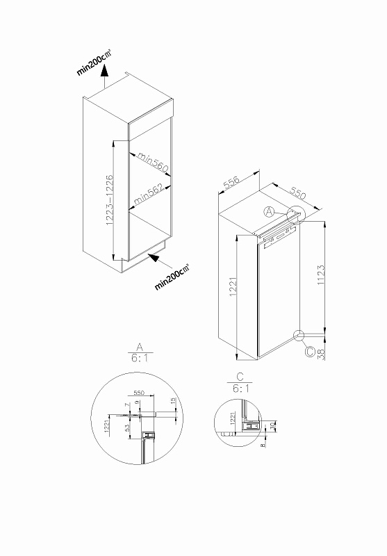 - встраиваемый двухкамерный холодильник