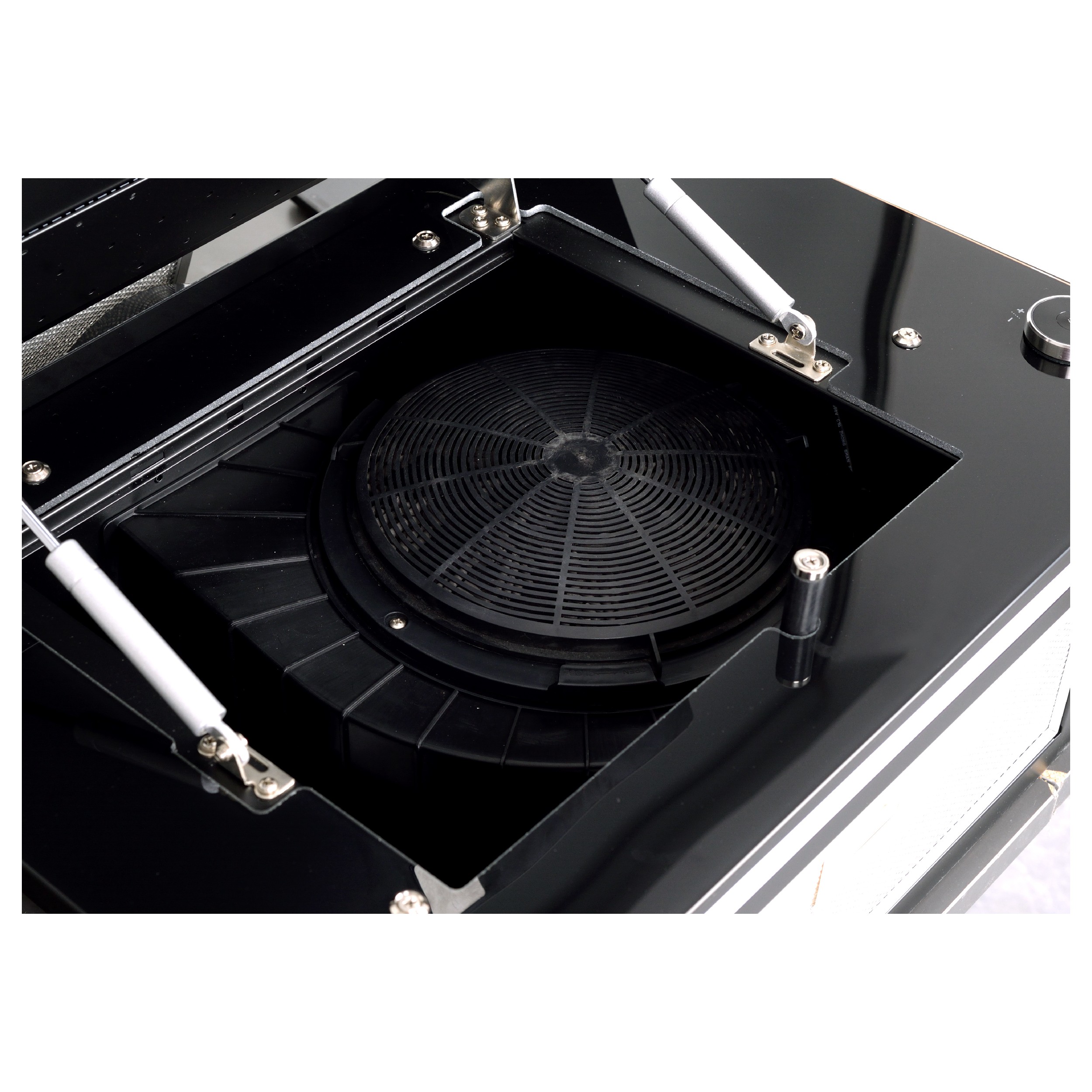 - Фронтальная панель из стекла: Вытяжка со стеклянной панелью привносит в дизайн помещения особую эстетику. Вытяжки из стекла очень удобны в очистке и управлении.