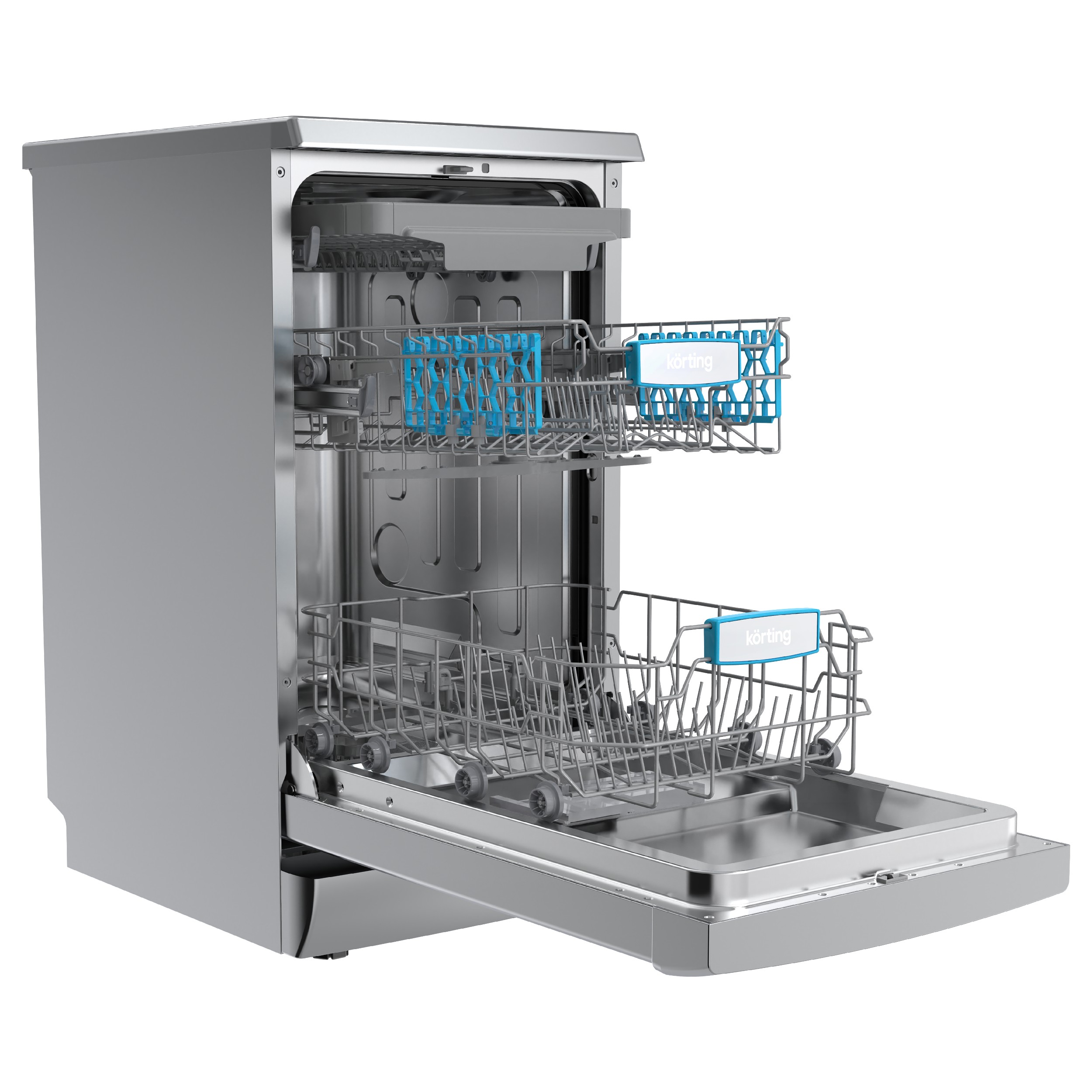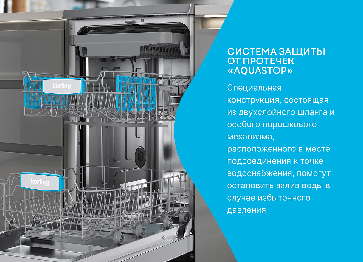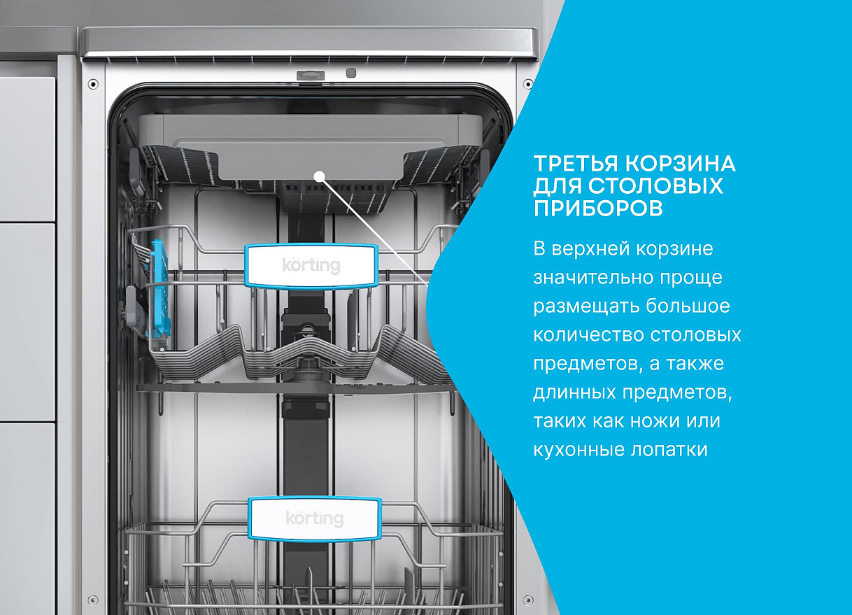 Эта модель оснащена восьмью различными программами мойки, включая стандартную, интенсивную, экономную, быструю мойку и даже специальную программу для стекла. Такое разнообразие позволяет выбрать наиболее подходящий режим в зависимости от типа и количества посуды. Кроме того, машина оснащена функцией половинной загрузки, что позволяет экономить воду и электроэнергию при мойке небольшого количества посуды. Посудомоечная машина Korting KDF 45678 S может вместить до 10 комплектов посуды, что делает ее идеальным выбором для средних и больших семей. Внутри машины находятся три корзины, включая сдвижную мини-корзину для столовых приборов. Высоту верхней корзины можно регулировать с помощью системы Easy Lift для удобства загрузки посуды различных размеров.