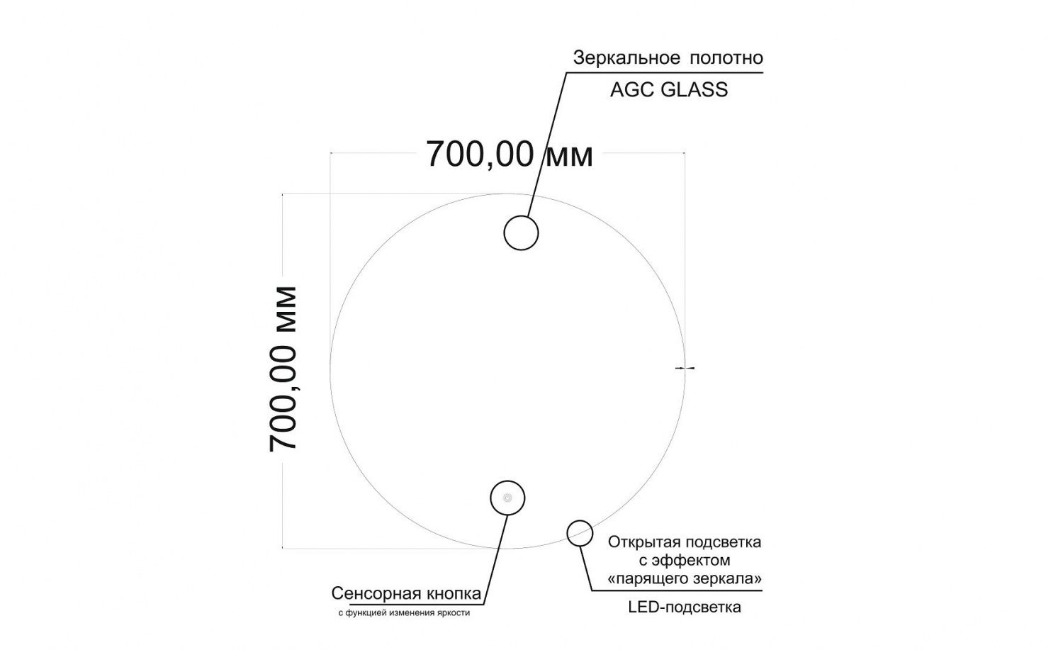 - Управление подсветкой осуществляется при помощи сенсорной кнопки с изменением яркости