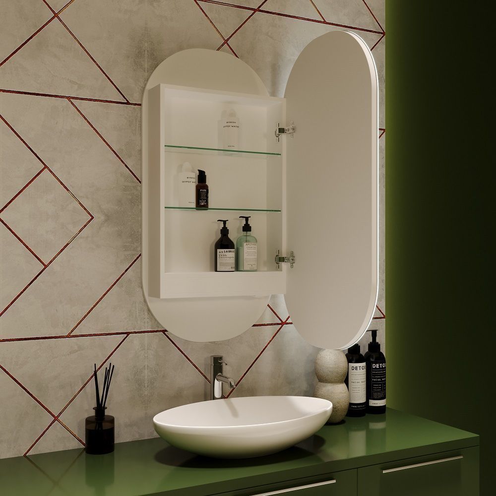 - Зеркало-шкаф с фронтальной светодиодной подсветкой .