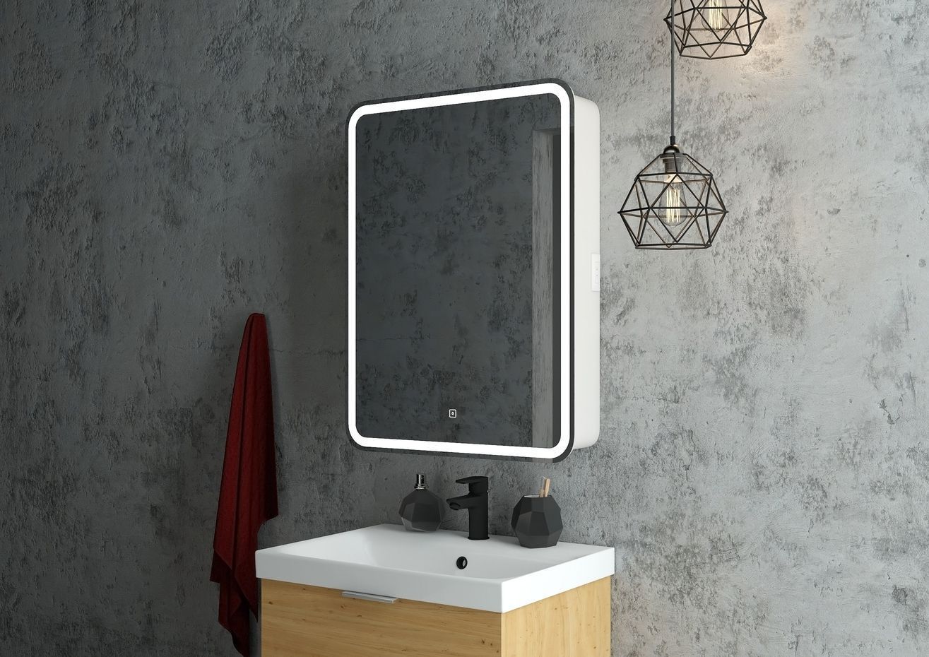 - Зеркало-шкаф, оснащенное светодиодной LED подсветкой с диммером