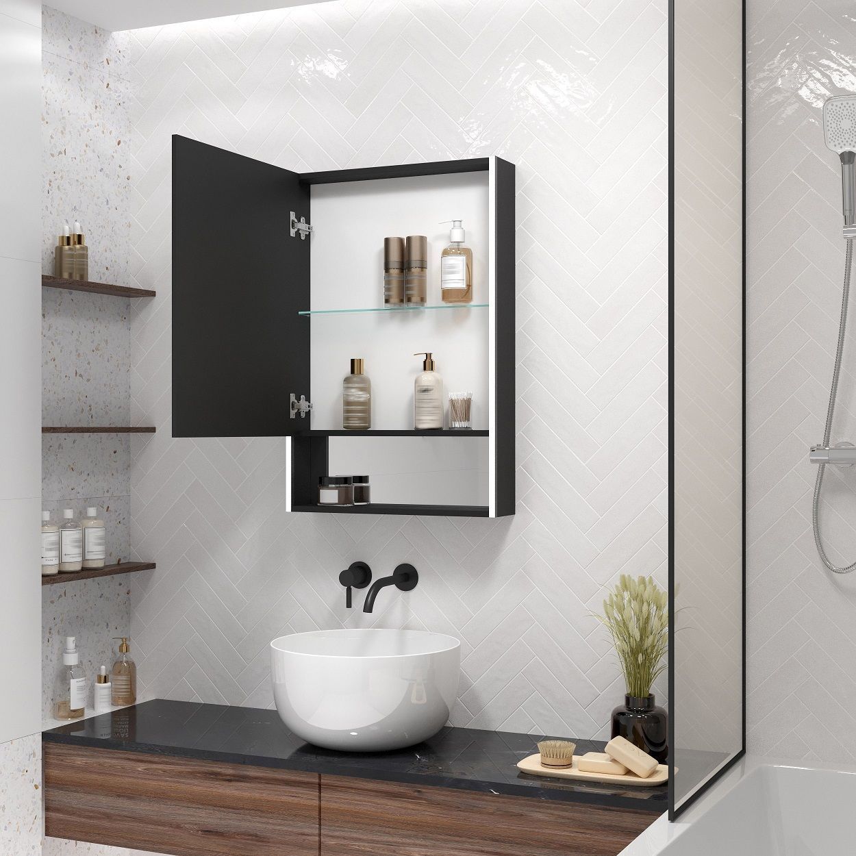 Зеркало-шкаф Art&Max Foggia 60 см AM-Fog-600-800-1D-L-DS-F-Nero, чёрный