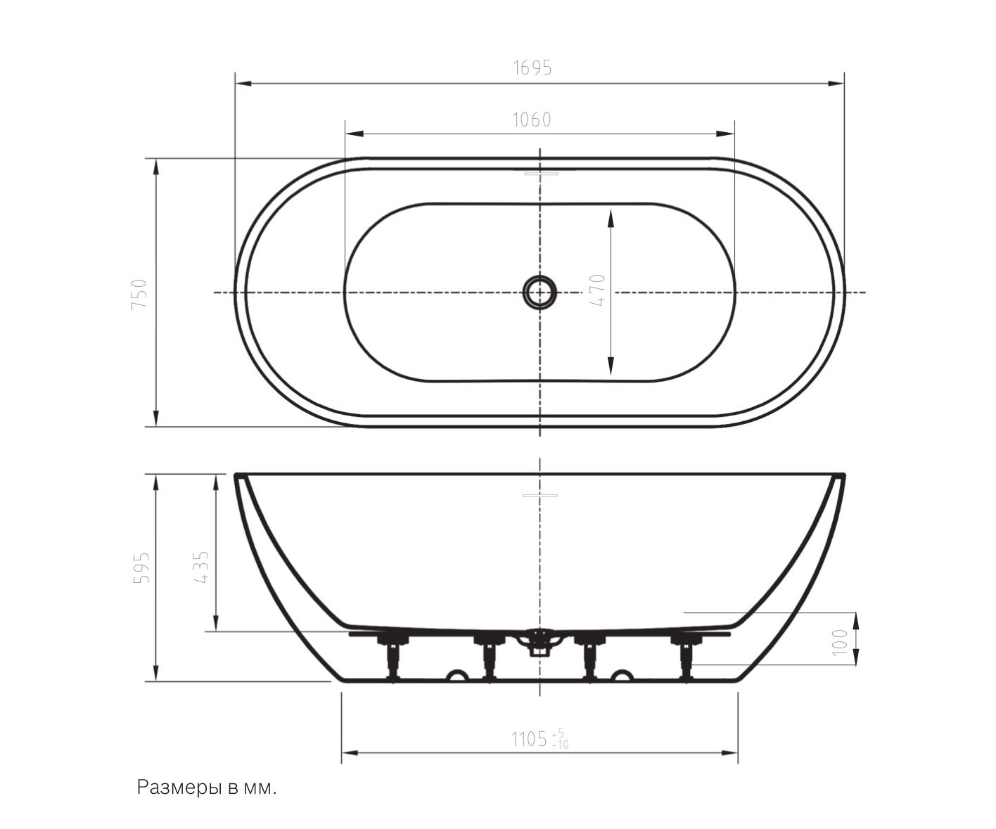 Ванна отдельностоящая Art&Max Latina 170x75 см AM-LATINA-1700-750