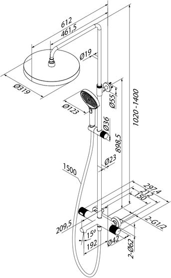 - Продуманная функциональность: внушительная верхняя лейка Ø32 см обеспечит всеобъемлющий поток, ручная лейка с 3 режимами, регулируемая до 140 см душевая стойка подходит для любого роста. Гибкий и надёжный силиконовый шланг 1,5 м.