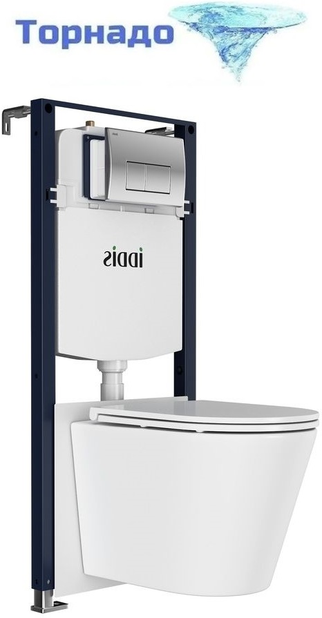 Инсталляция с подвесным безободковым унитазом комплект: Iddis Calipso CAQPO1GCi73 сиденье микролифт, крепление, кнопка смыва хром (система смыва Торнадо)