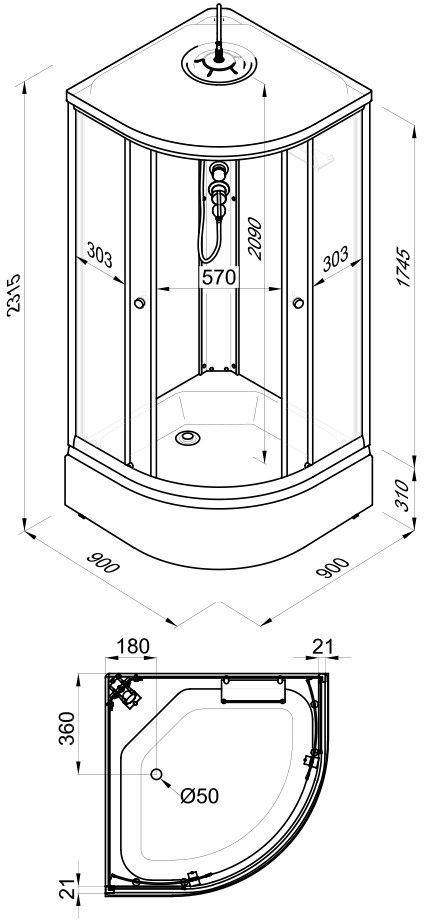 Душевая кабина Тритон Топ 90x90 см Щ0000065702, белый/прозрачное