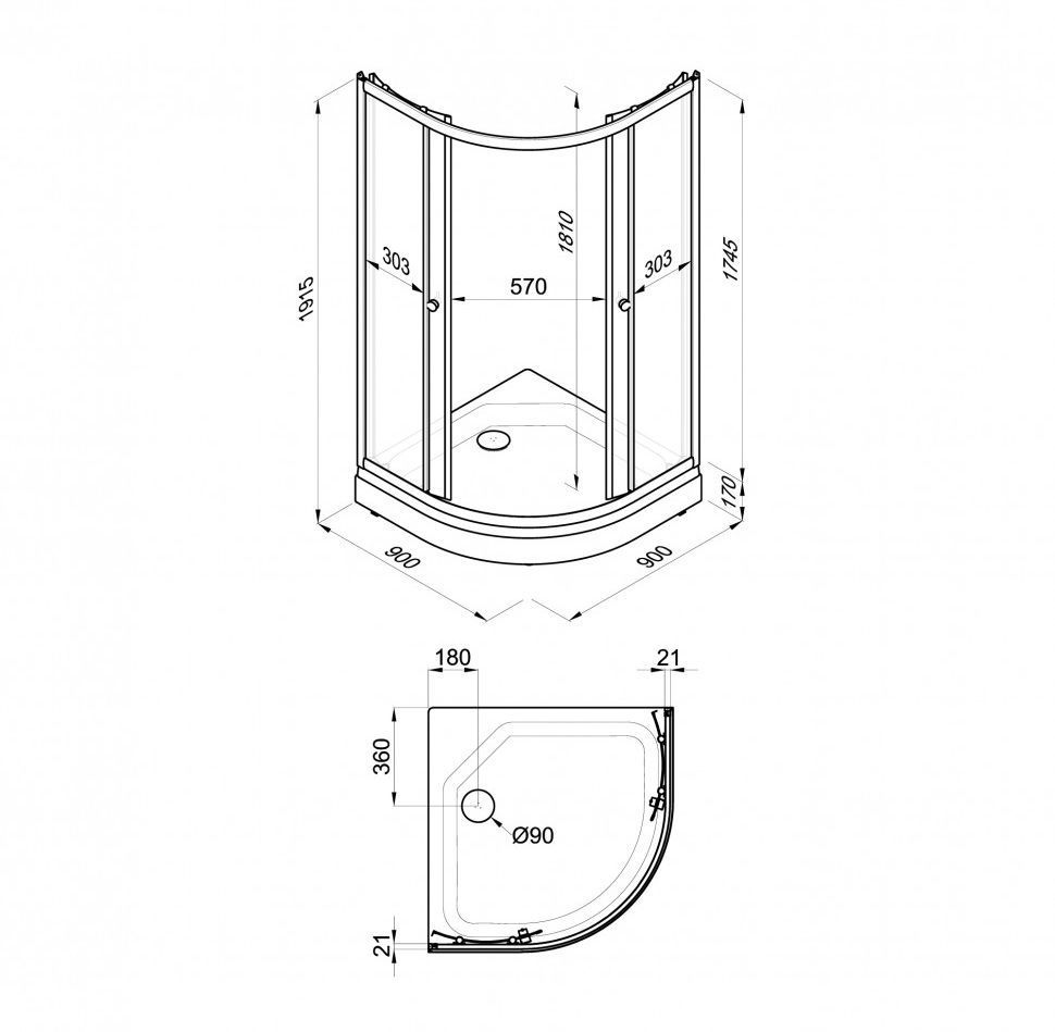 Душевое ограждение Triton Грэй 90x90 см Щ0000066464, белый/тонированное