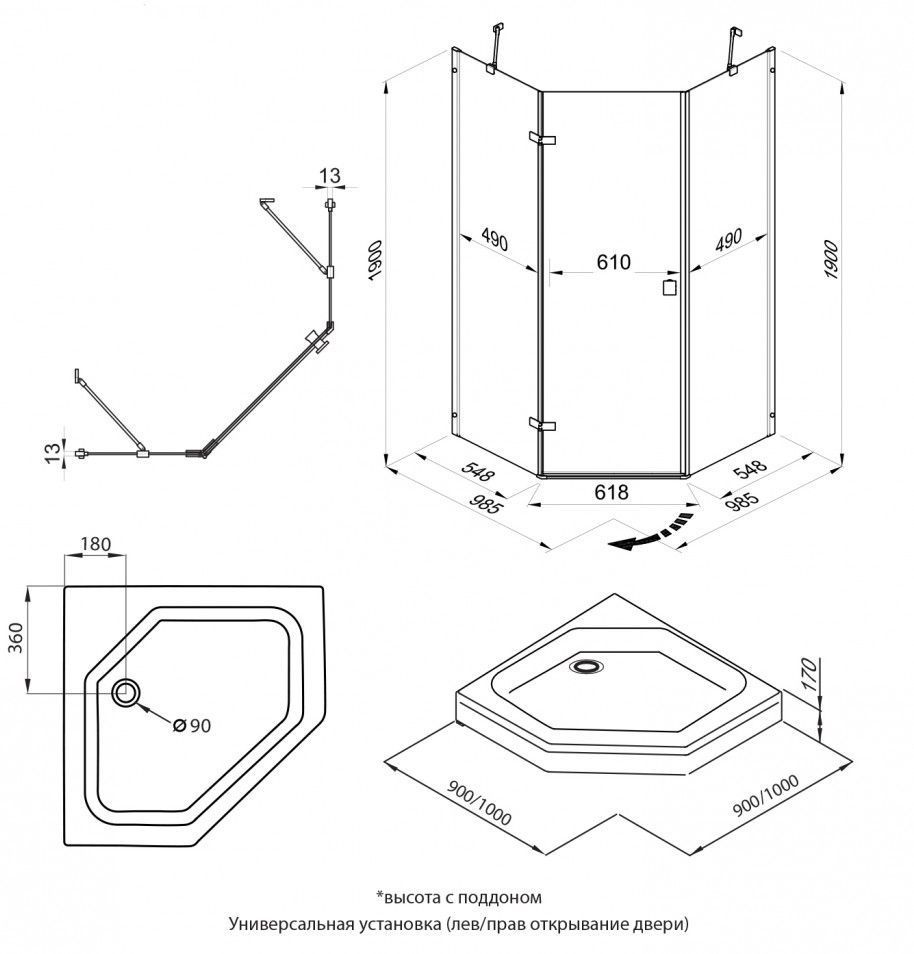 Душевое ограждение Triton Сигма 100x100 см Щ0000056815, хром/прозрачное
