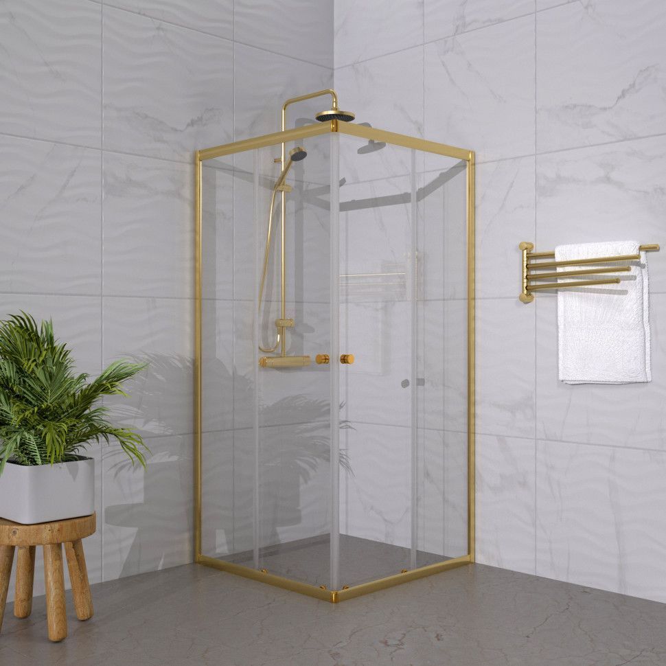 Душевое ограждение Triton Вента 90x90 см Щ0000076256, золото/прозрачное