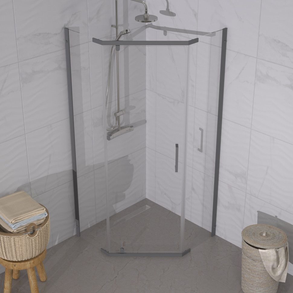 Душевое ограждение Triton Дека, размер 1000x1000x1900 мм, профиль графит, стекло прозрачное. Ширина входа 500 мм.
