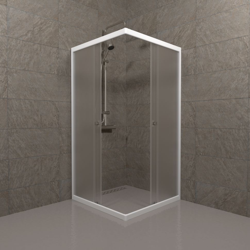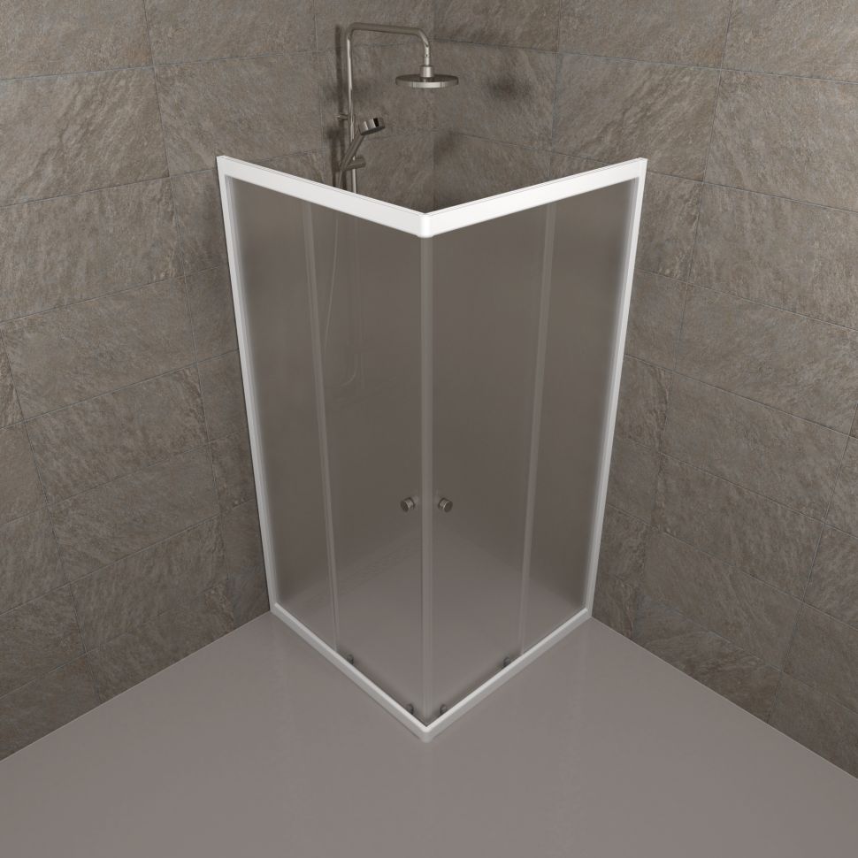 Душевое ограждение Triton Вельвет, размер 900x900x1745 мм, профиль белый, стекло матовое. Ширина входа 520 мм.