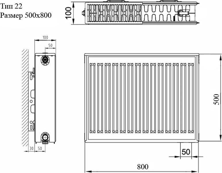 Радиатор Azario 800х500 мм AZ-C22-500-800