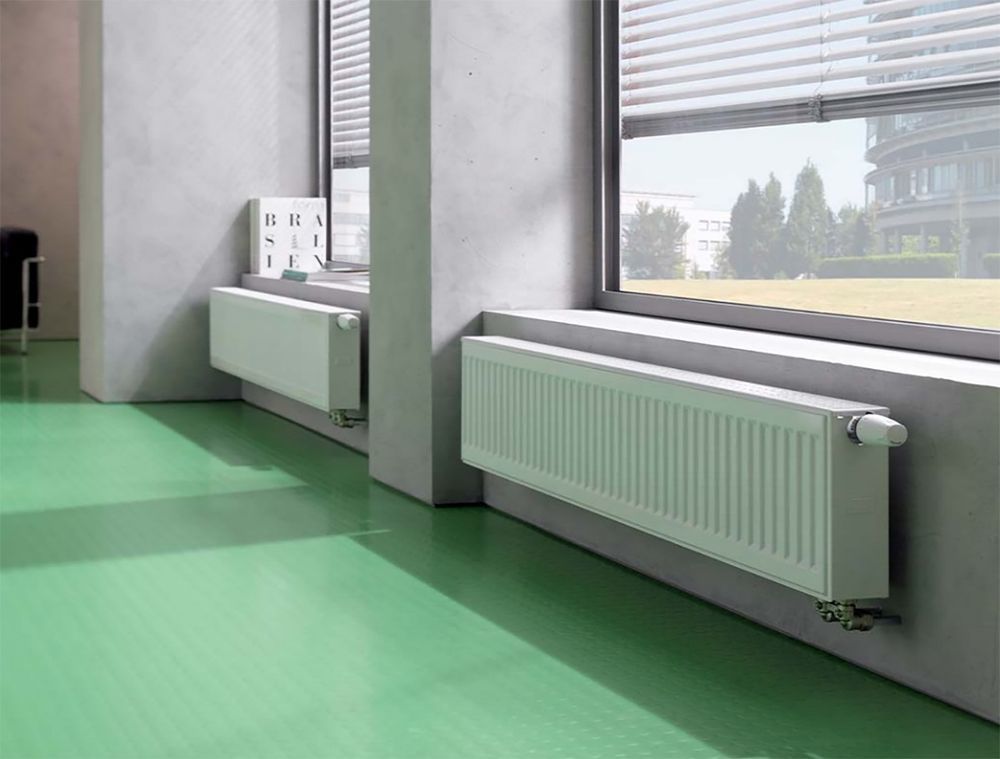 Радиаторы состоят из тепловых панелей с дополнительными теплоотводящими поверхностями и оснащаются верхними декоративными решетками с боковыми крышками. Панели радиаторов сварные, состоят из двух листов высококачественной холоднокатанной стали, толщиной 1,2 мм.