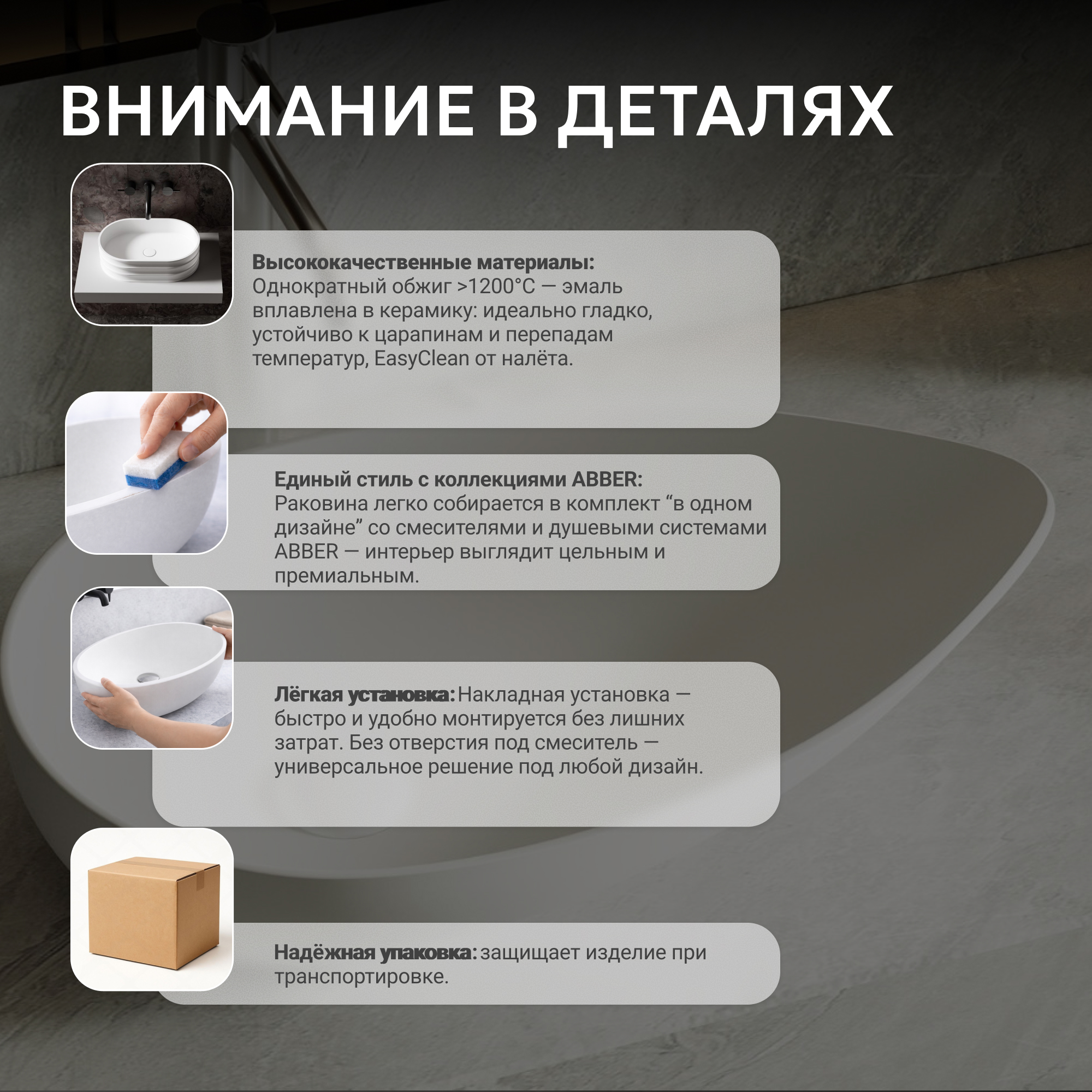 Раковина-чаша Abber Bequem 59 см AC2117MW, цвет белый матовый.