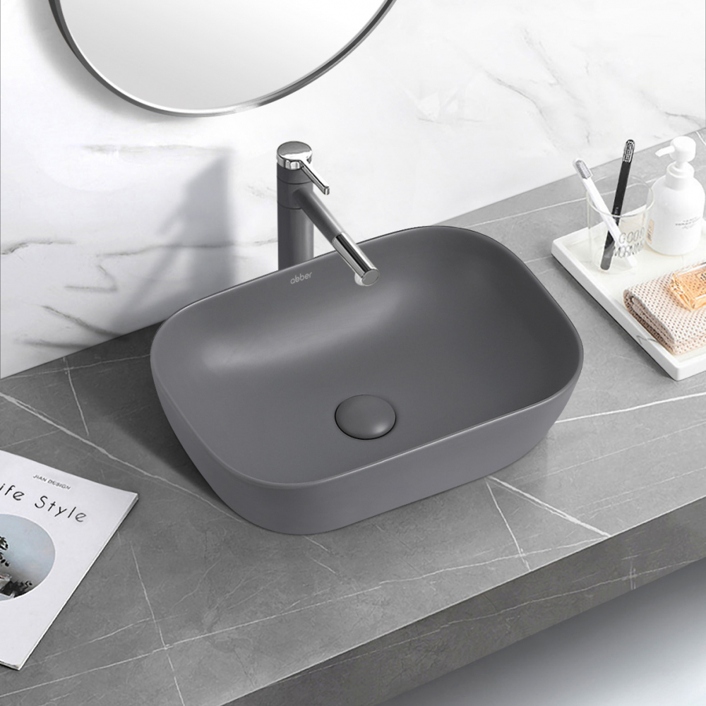 Раковина-чаша Abber Rechteck 46 см AC2200MG, серый матовый