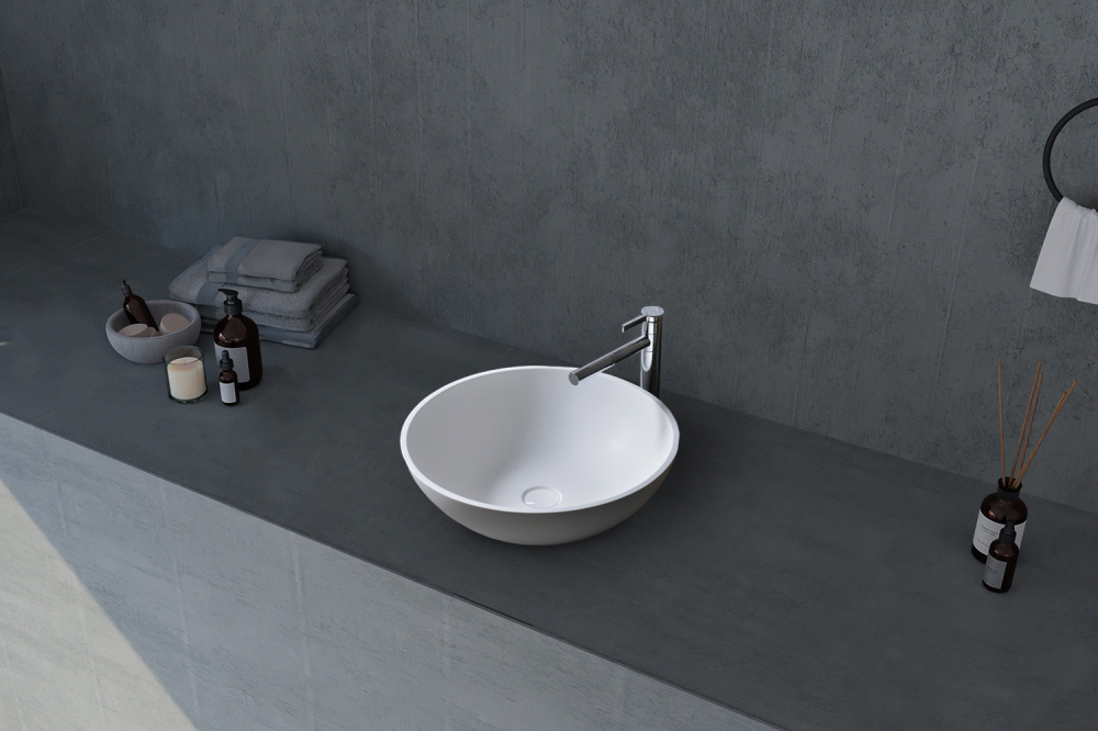 Раковина-чаша Abber Stein 40 см AS2608 с донным клапаном, цвет белый матовый.