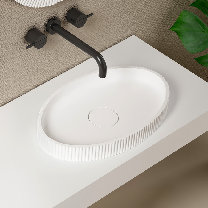 Раковина-чаша Abber Stein 55 см AS2603, материал искусственный камень, цвет белый. Накладка на слив и клапан в комплекте.
