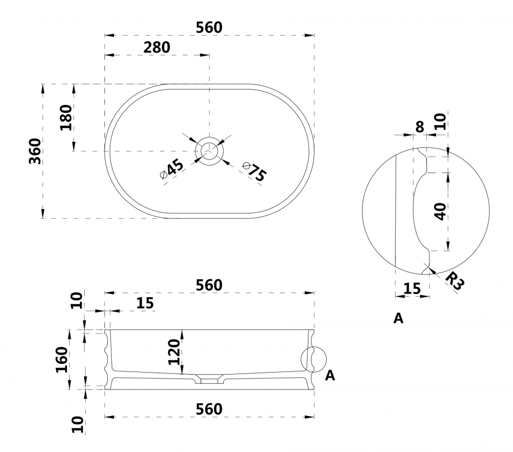 Раковина-чаша Abber Stein 56 см AS2650 с донным клапаном, цвет белый матовый.