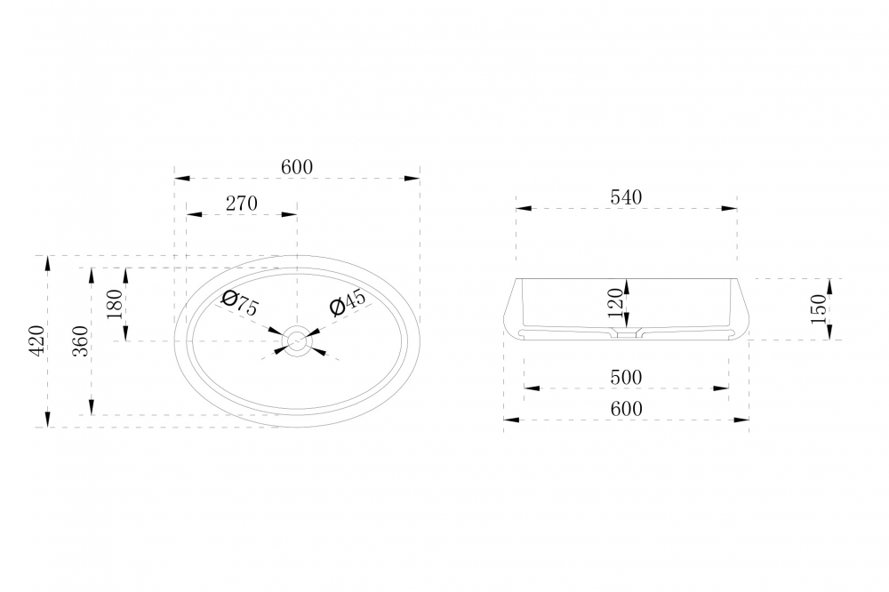 Раковина-чаша Abber Stein 60 см AS2605, цвет белый матовый.