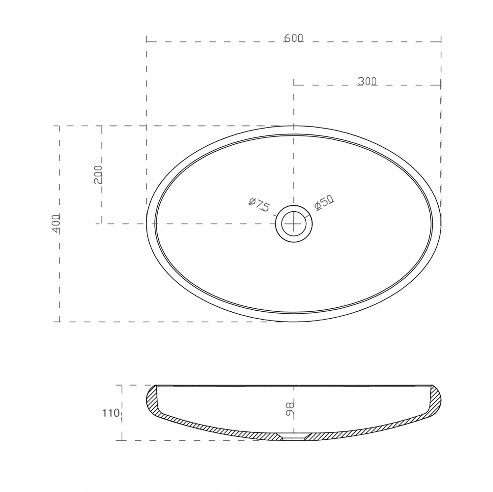 Раковина-чаша Abber Stein 60 см AS2614 с донным клапаном, цвет белый матовый.