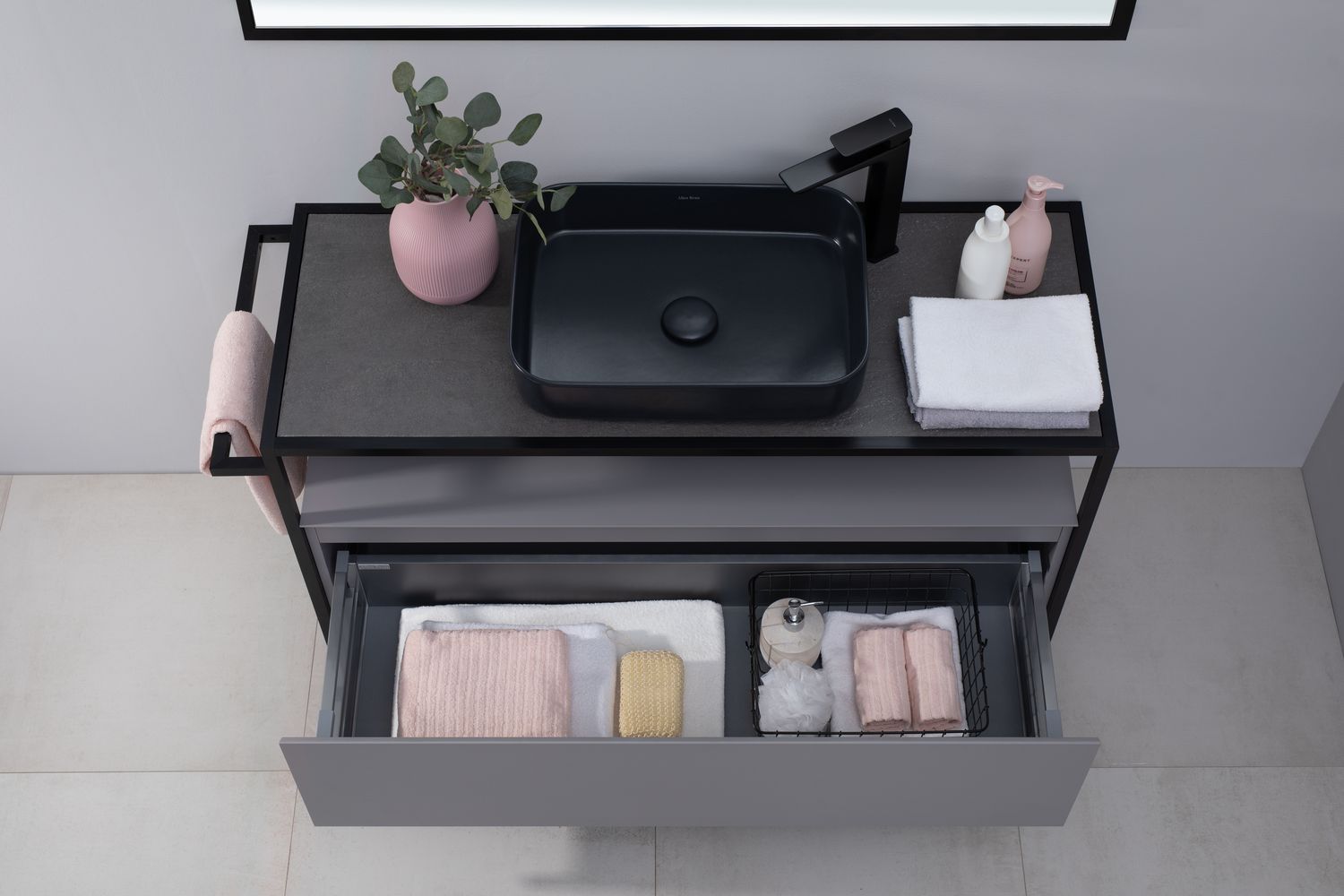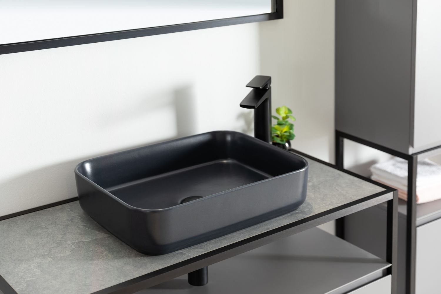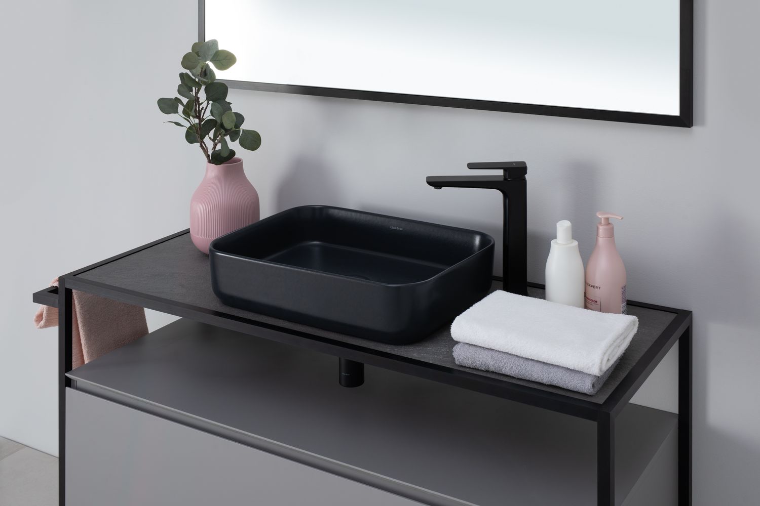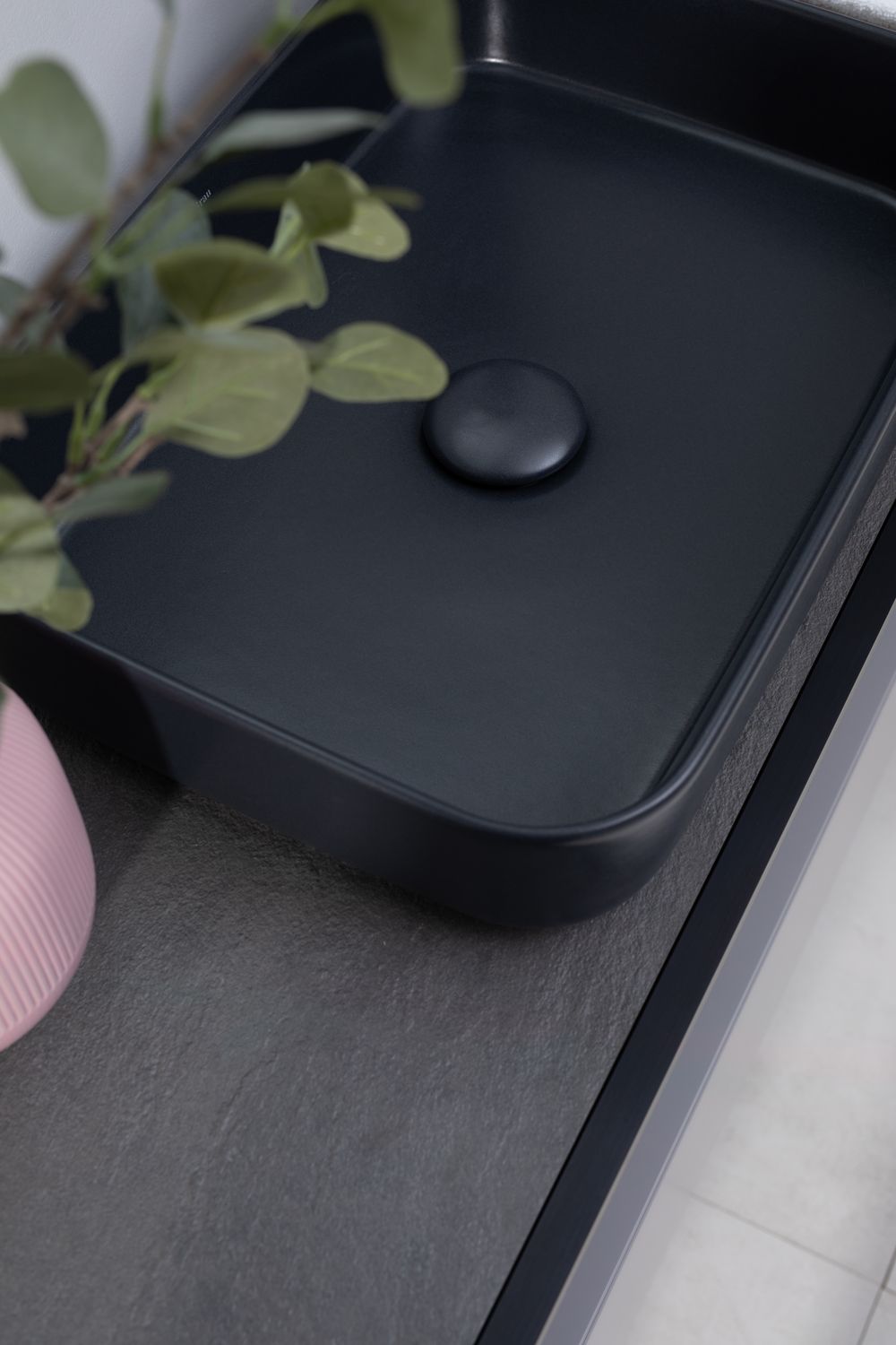 - Накладная раковина для ванной комнаты Allen Brau Fantasy Quad в цвете «Черный матовый» шириной 50 см изготовлена из высококачественной керамики, что обеспечивает прочность, долговечность и элегантный внешний вид.