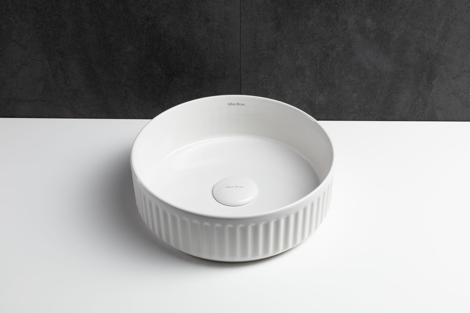 - Накладная раковина для ванной комнаты Allen Brau Fantasy Line в цвете «Белый» шириной 36 см изготовлена из качественной и прочной керамики, что обеспечивает надежность и устойчивость.