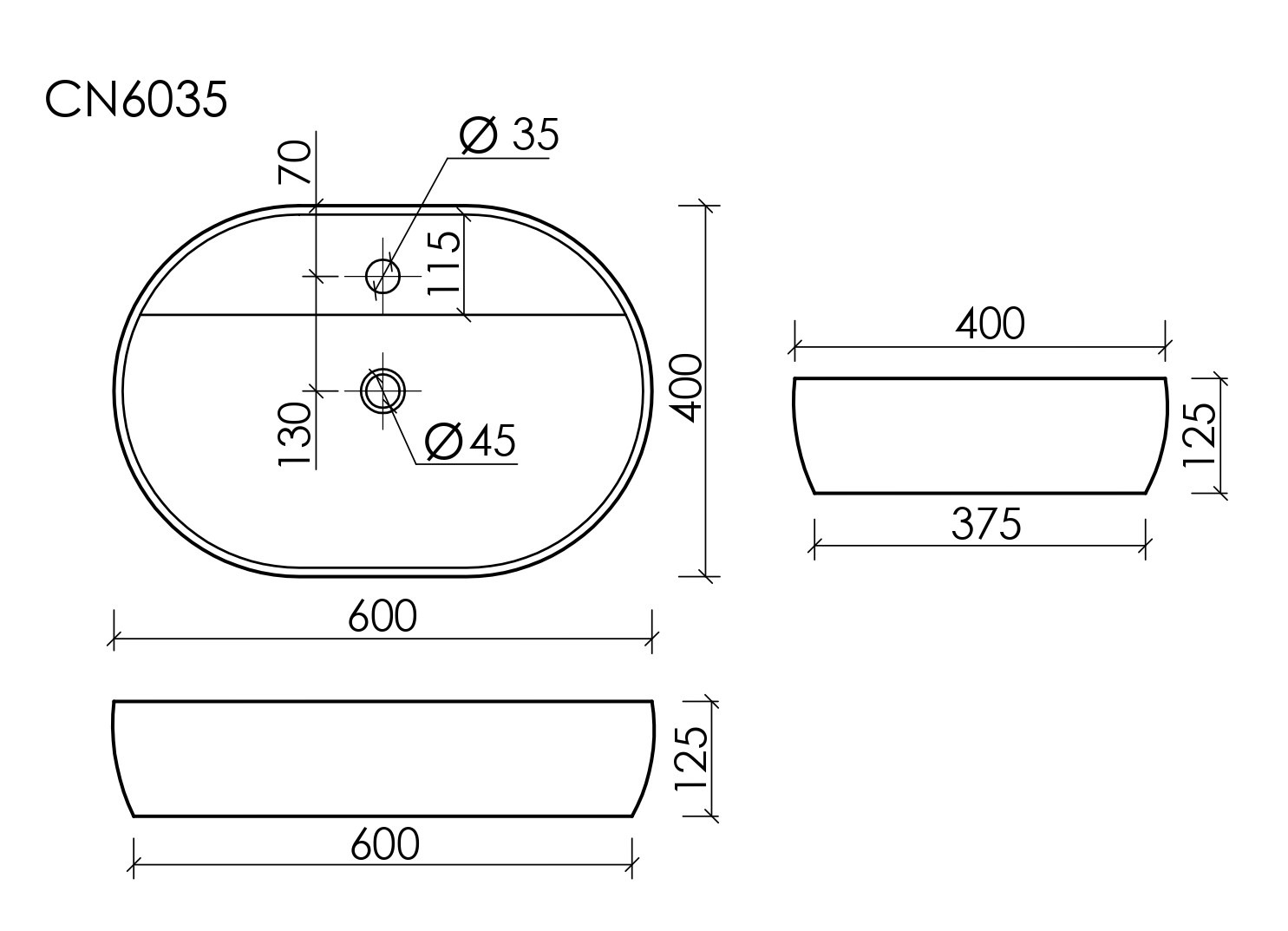 Раковина-чаша Ceramicanova Element CN6035, размер 600х400 мм. Цвет белый.