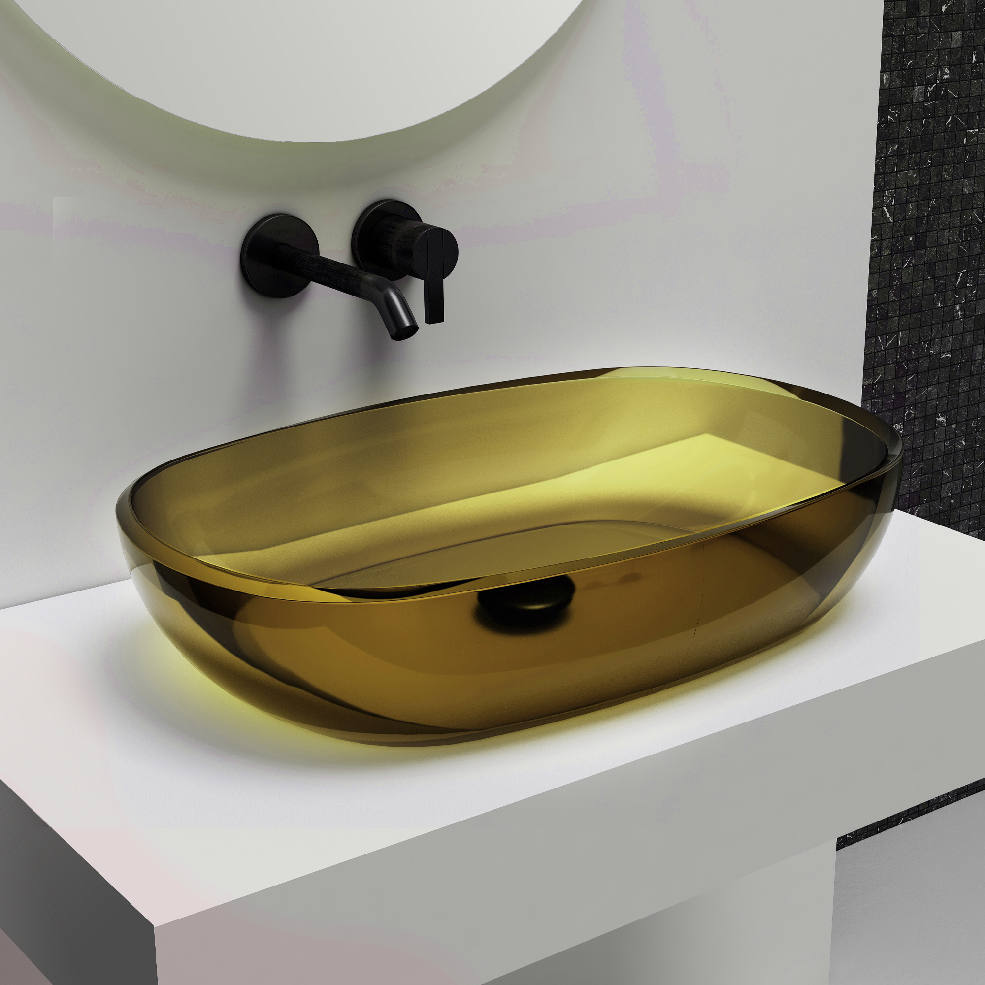 Раковина-чаша прозрачная Abber Kristall 60 см AT2805Vesuvian, материал полиэфирная смола, цвет оливковый. Донный клапан приобретается отдельно.