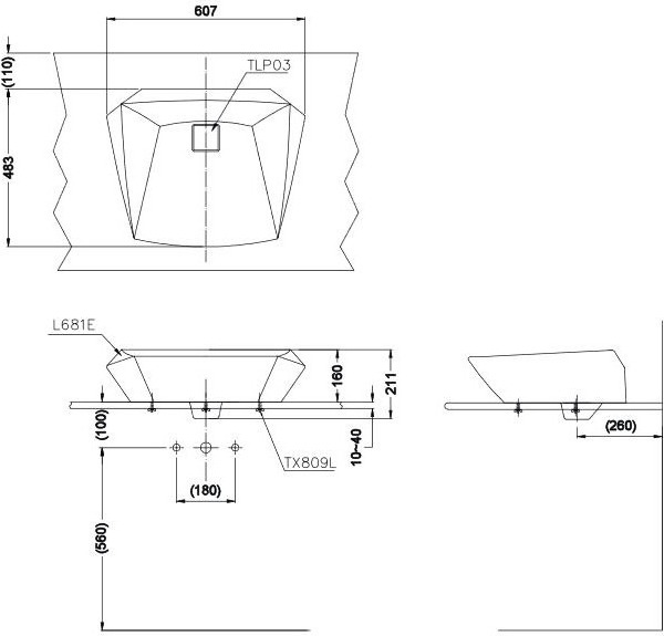 Раковина-чаша Toto Jewelhex со сливным клапаном DH446VE, размер 607х483 мм. Цвет белый.