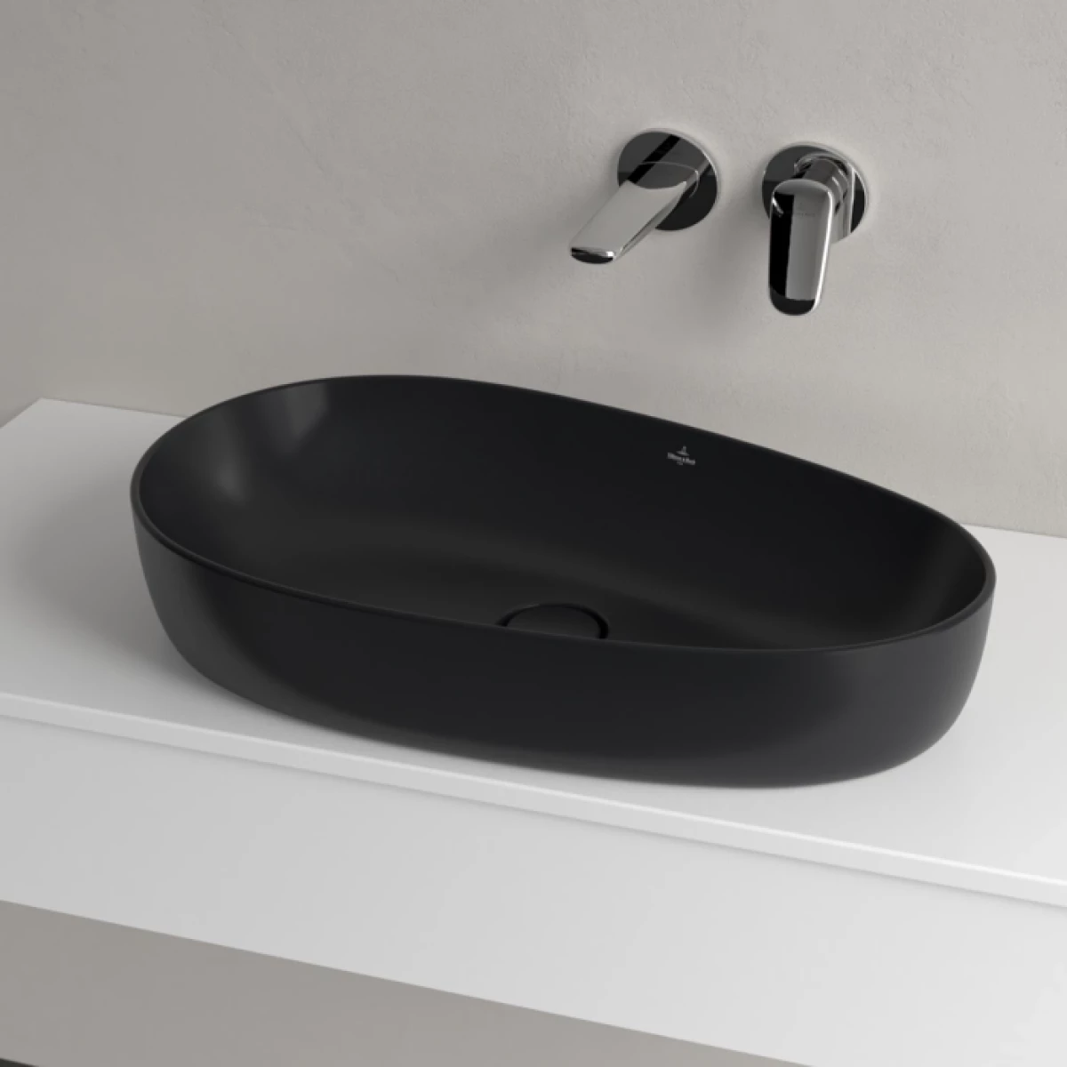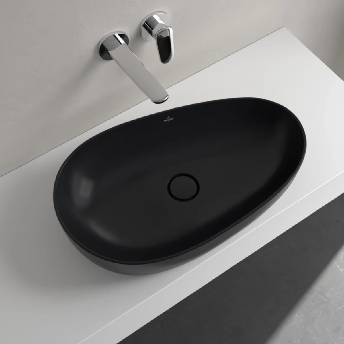 Раковина-чаша Villeroy&Boch Antao 65 см 4A7465R7, покрытие CeramicPlus, без перелива с донным клапаном в комплекте, цвет чёрный матовый.