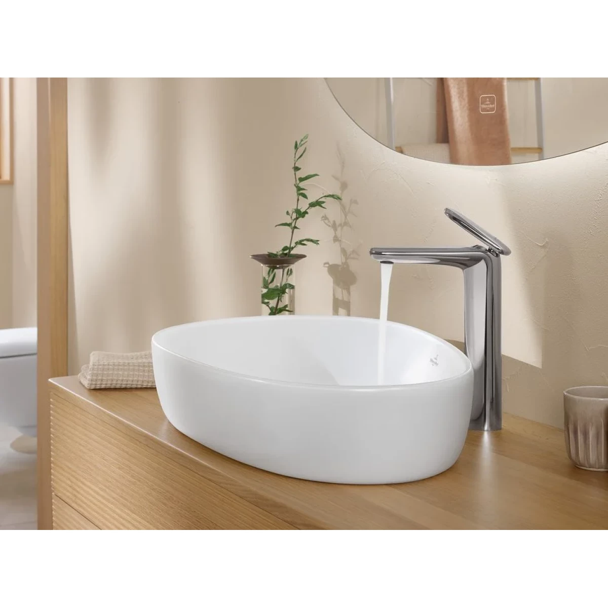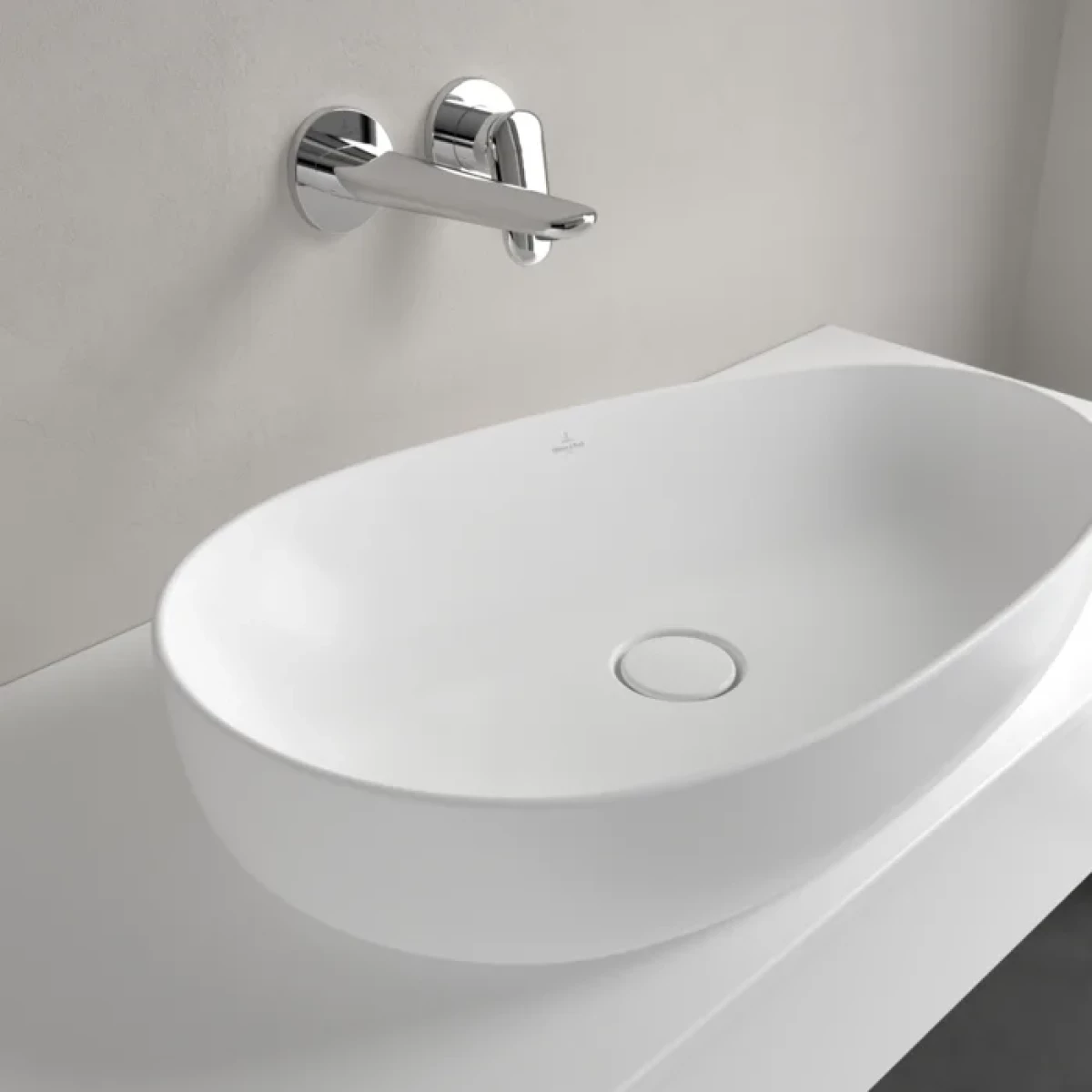 Раковина-чаша Villeroy&Boch Antao 65 см 4A7465RW, покрытие CeramicPlus, без перелива с донным клапаном в комплекте, цвет белый матовый.