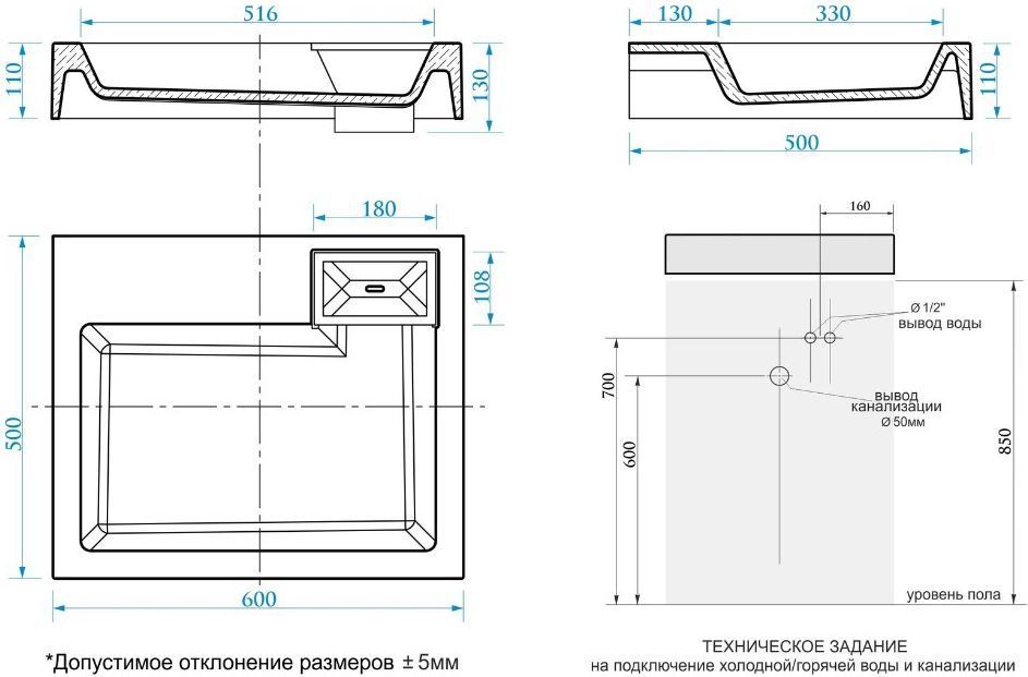Раковина над стиральной машиной Azario Etna 60 см CS00078303
