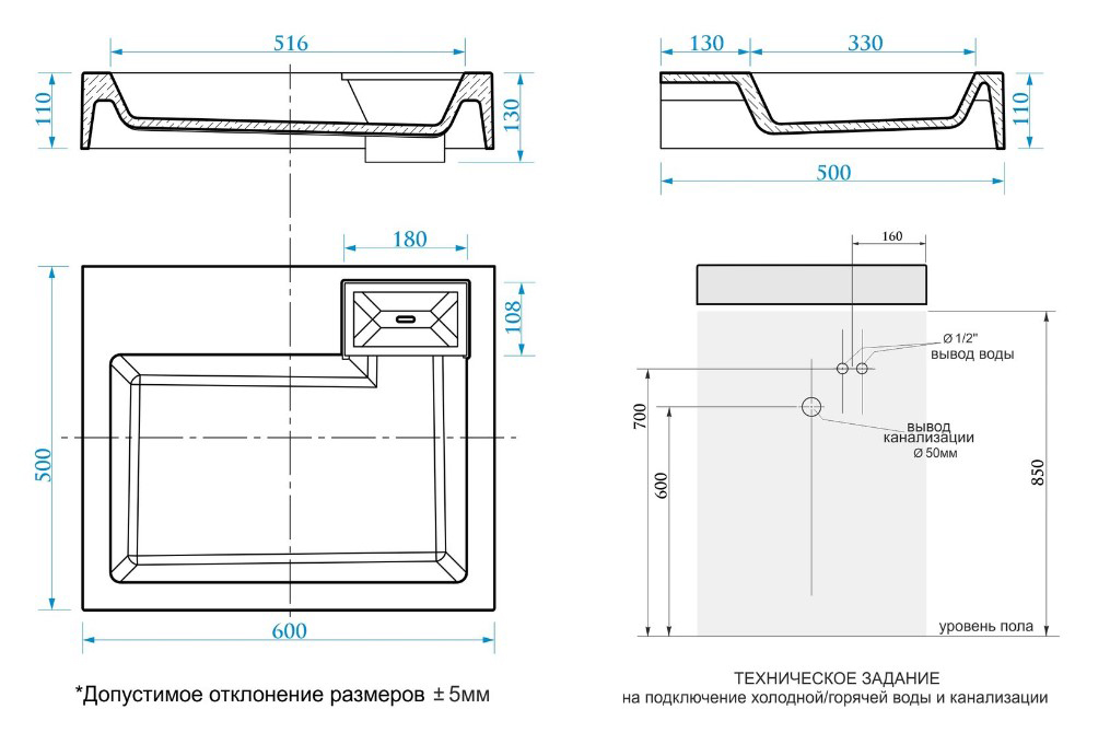 Раковина состоит из натурального молотого мрамора и полиэфирной смолы, покрывается специальным гелькоутом - полимером повышенной прочности и химической стойкости, марки ViaPal», который имеет сертификат для использования в медицинских учреждениях. Все раковины проходят термообработку в промышленной печи при температуре 80 °C, таким образом выводятся все вредные вещества. Каждая раковина доводится вручную и полируется, поэтому все изделия имеют безупречный внешний вид. Раковина комплектуется кронштейнами и сифоном.