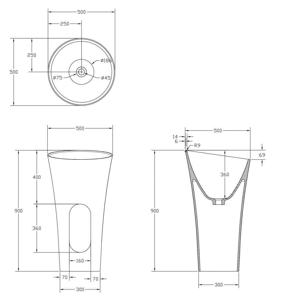 Раковина напольная Abber Stein 50 см AS2509-H, белый матовый