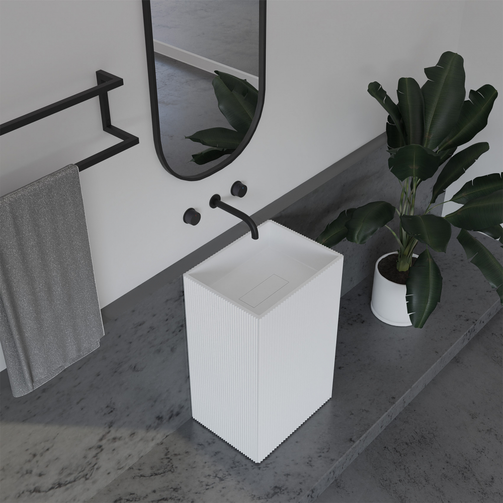 Раковина напольная Abber Stein 50 см AS2503-H, материал искусственный камень, цвет белый матовый. Накладка на слив и клапан в комплекте.