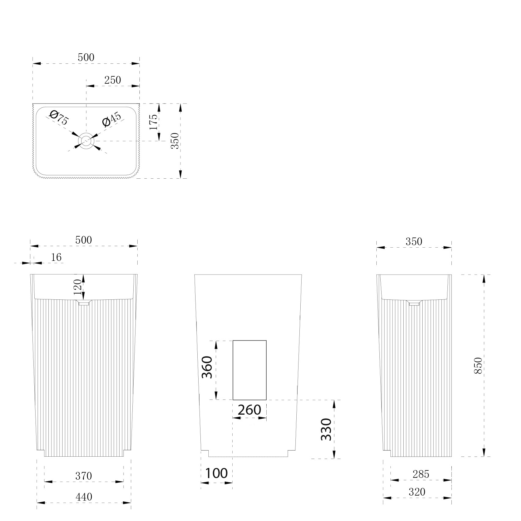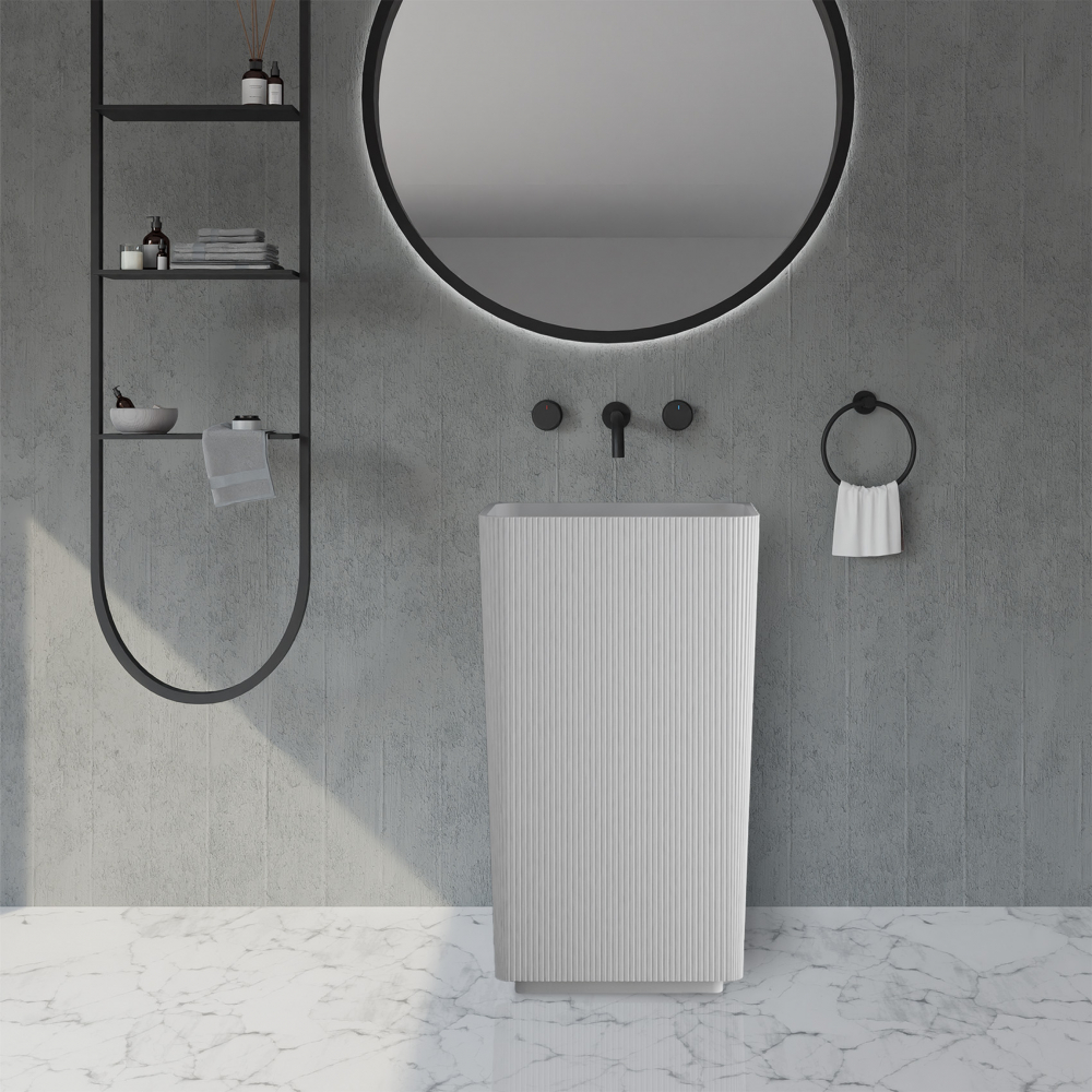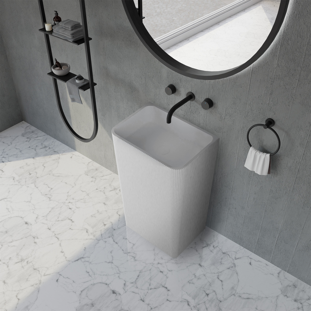 Раковина напольная Abber Stein 50 см AS2505-H с донным клапаном, материал искусственный камень, цвет белый матовый.