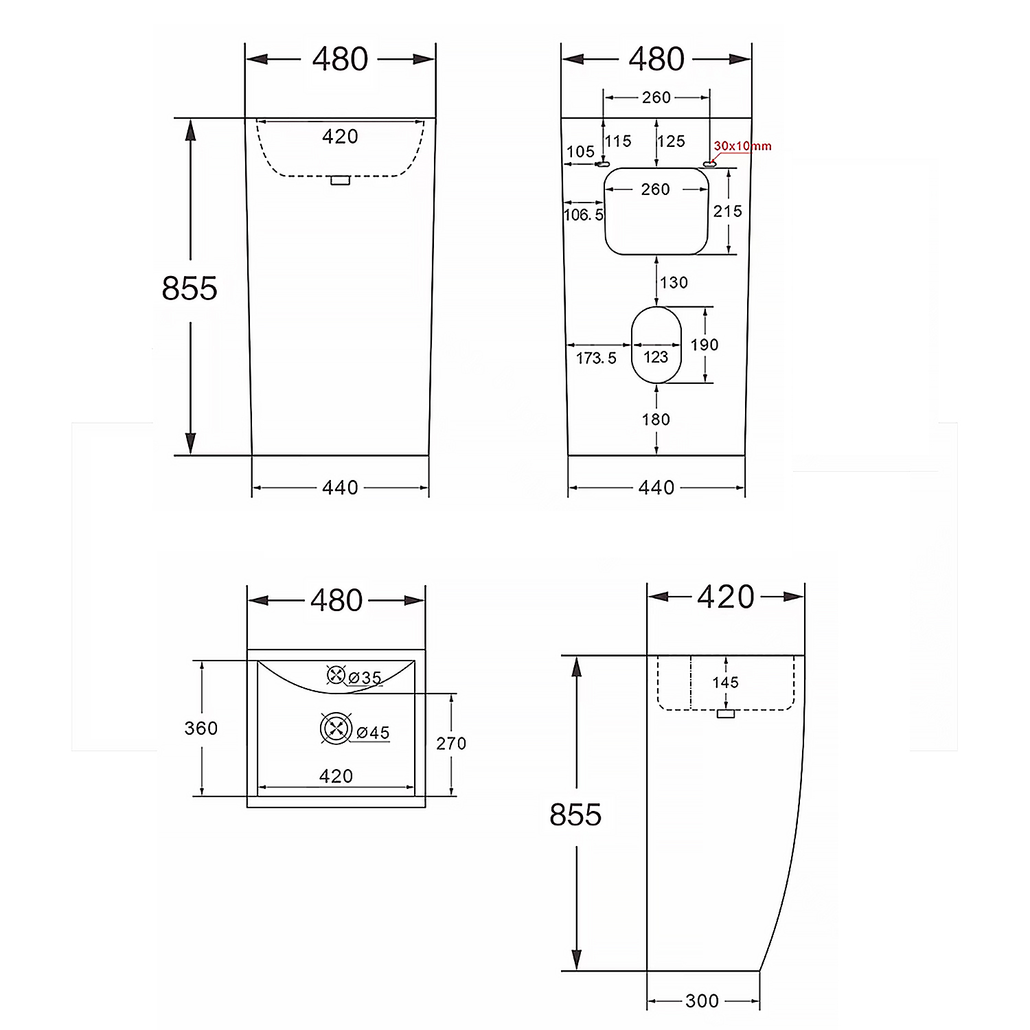 Раковина напольная Azario Comella 48 см AZ-314, цвет белый.