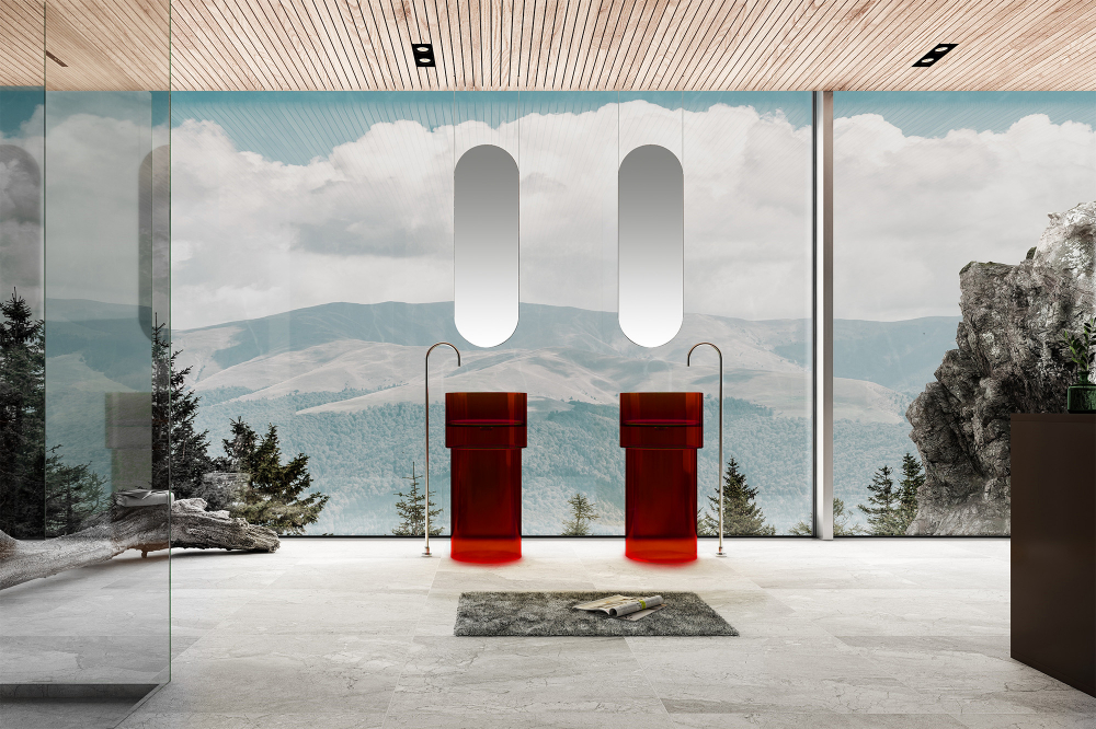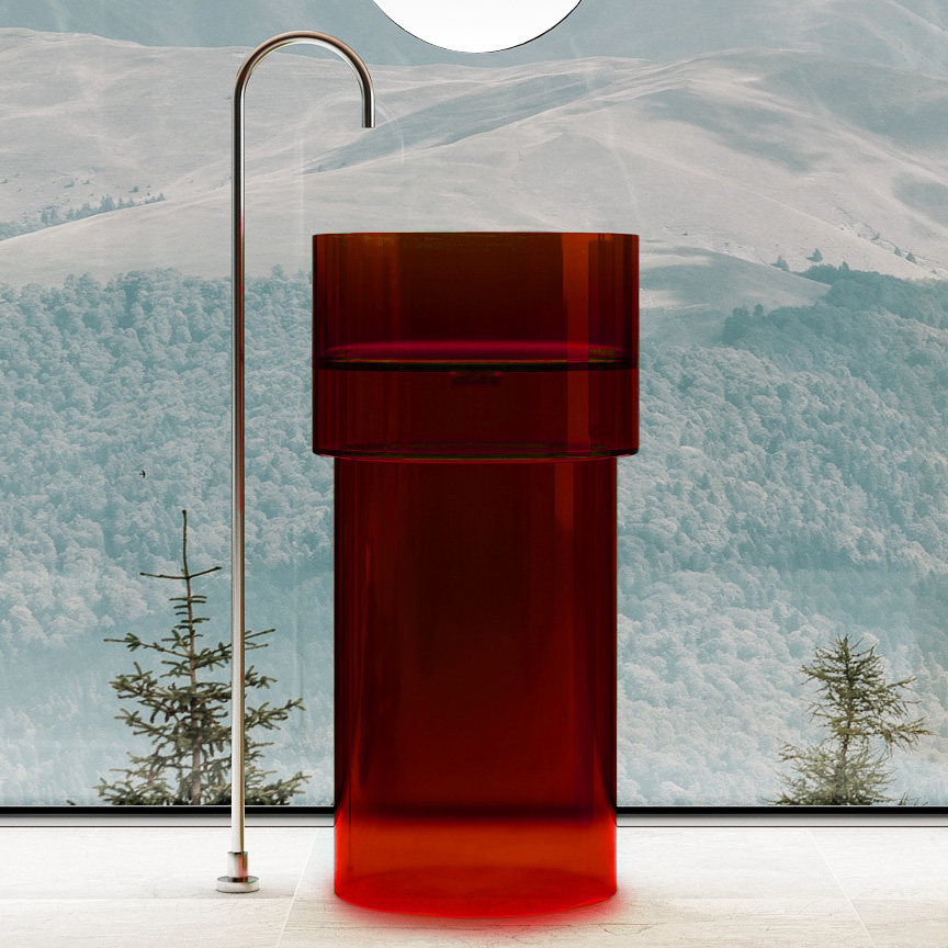 Раковина напольная прозрачная Abber Kristall 45 см AT2701Rubin-H, материал полиэфирная смола, цвет красный. Донный клапан в комплект не входит и приобретается отдельно.