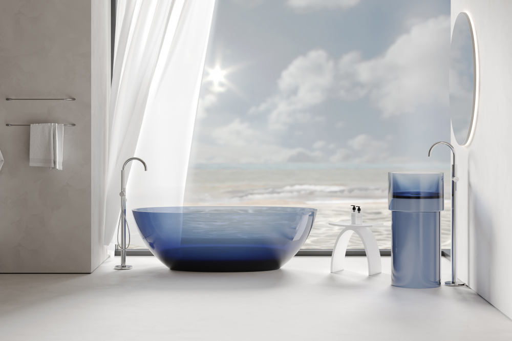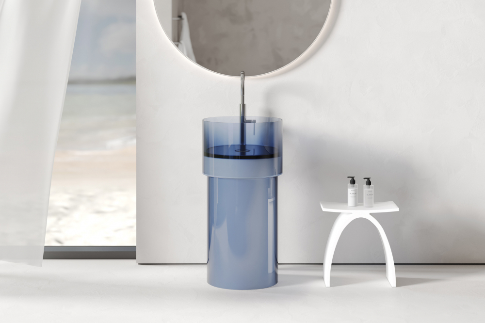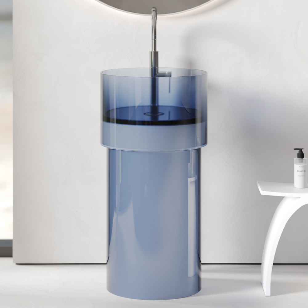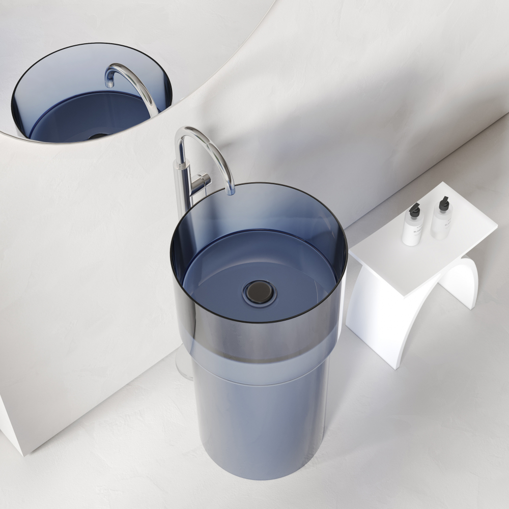 Раковина напольная прозрачная Abber Kristall 45 см AT2701Saphir-H, материал полиэфирная смола, цвет синий.