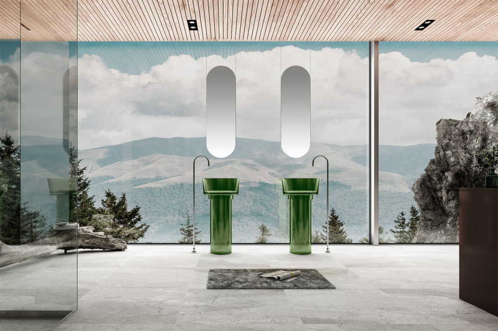 Раковина напольная прозрачная Abber Kristall 45 см AT2702Emerald, материал полиэфирная смола, цвет зеленый.